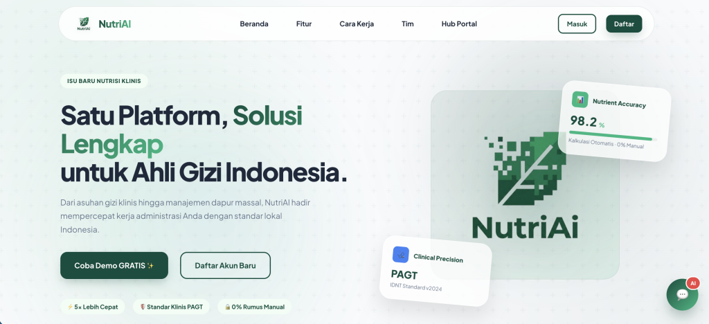 NutriAI Pro resmi diluncurkan sebagai platform berbasis kecerdasan buatan untuk profesi ahli gizi melalui webinar bertajuk Resolusi Gizi Berbasis Teknologi AI, Minggu, 19 April 2026. Peluncuran ini diikuti lebih dari 250 peserta dari kalangan mahasiswa, praktisi, dan akademisi. Platform yang dikembangkan PT NutriAI Indonesia Cerdas itu merupakan pengembangan dari versi awal atau minimum viable product (MVP) yang sebelumnya telah digunakan oleh 119 ahli gizi berbayar di berbagai daerah di Indonesia. Dalam versi terbarunya, NutriAI Pro hadir sebagai platform web profesional yang lebih terintegrasi.